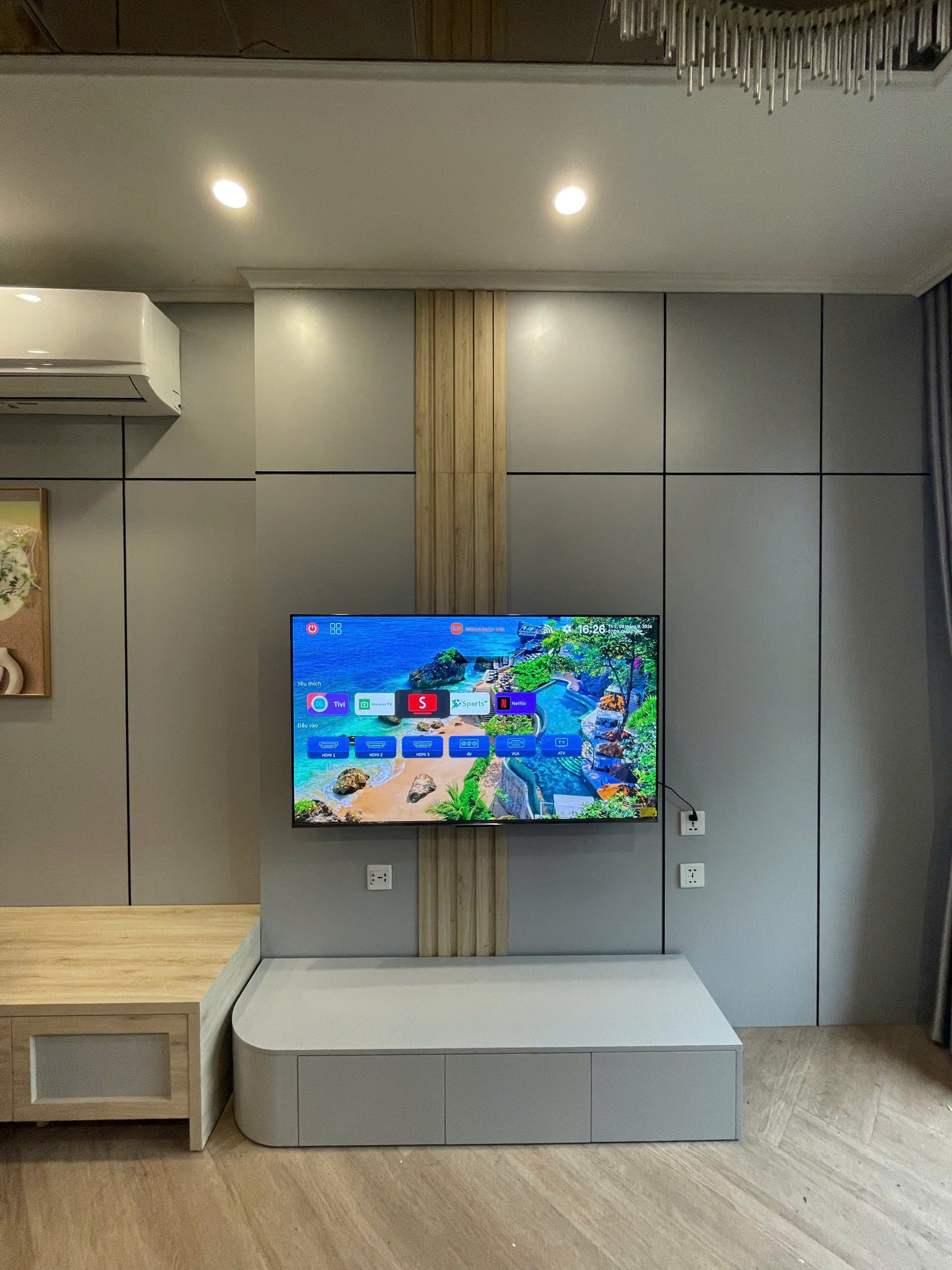 - Viền mỏng, thiết kế mạnh mẽ, phù hợp với không gian phòng khách lớn và hiện đại